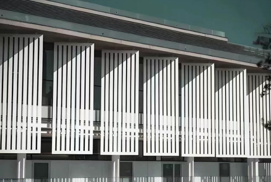 Tower Grille: Kendt som et V-formet aluminiumgitter. Det har en unik konveks strukturstil for et komplekst aluminiumgitter, hvis udseende udtrykkes i en række V-formede eller tårnformede enheder, der er forbundet til hinanden, hvilket skaber en unik tredimensionel form.